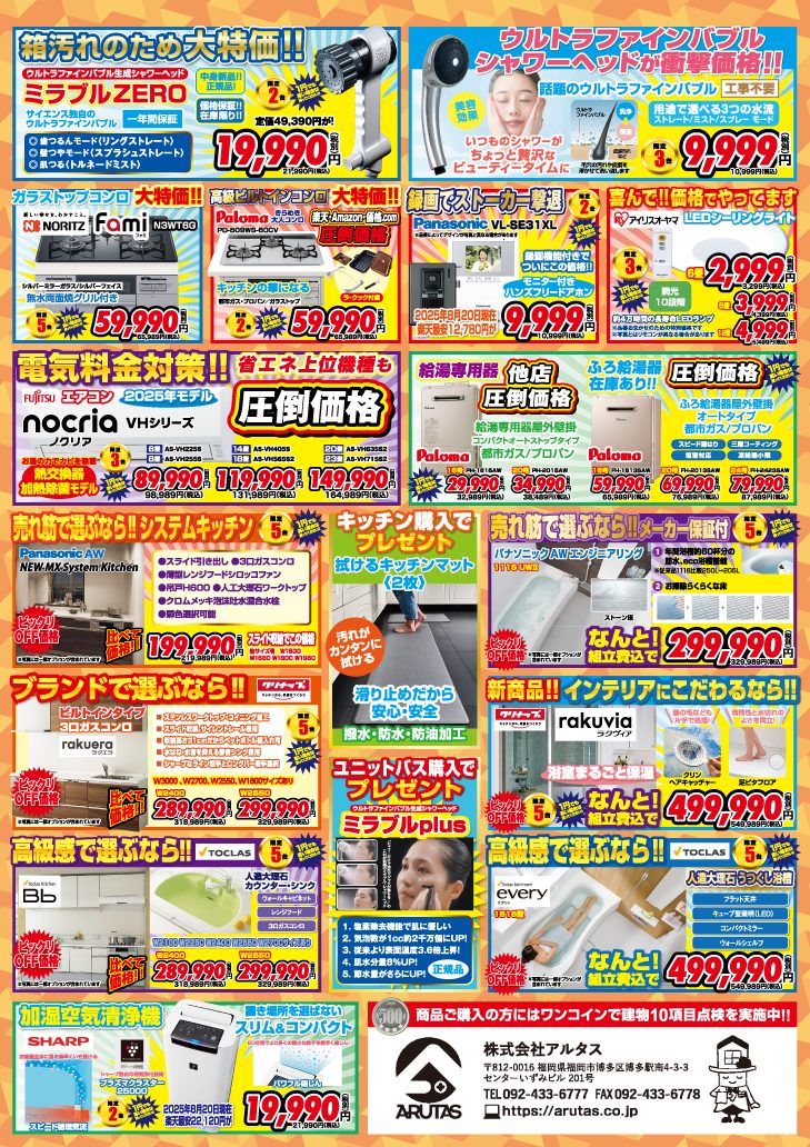 2025年9月~10月チラシ情報 2025.09.01(Mon) ブログ アルタスより9月、10月のオススメ品をご案内👏 酷暑も過ぎようやく過ごしやすくなってくるこの季節🍁 リフォームプランを立て快適な住まいづくりをするいい時期です👍 特に水回りのリフォームは涼しくなるこれからがチャンスです✨ 詳しくは下のチラシを要チェック! お見積り無料ですのでどんな些細なお家のお悩みもお気軽にご相談ください! お問合せ心よりお待ちしております。 📞 お問い合わせ先:[092-433-6777] 詳細はチラシをクリック☟☟